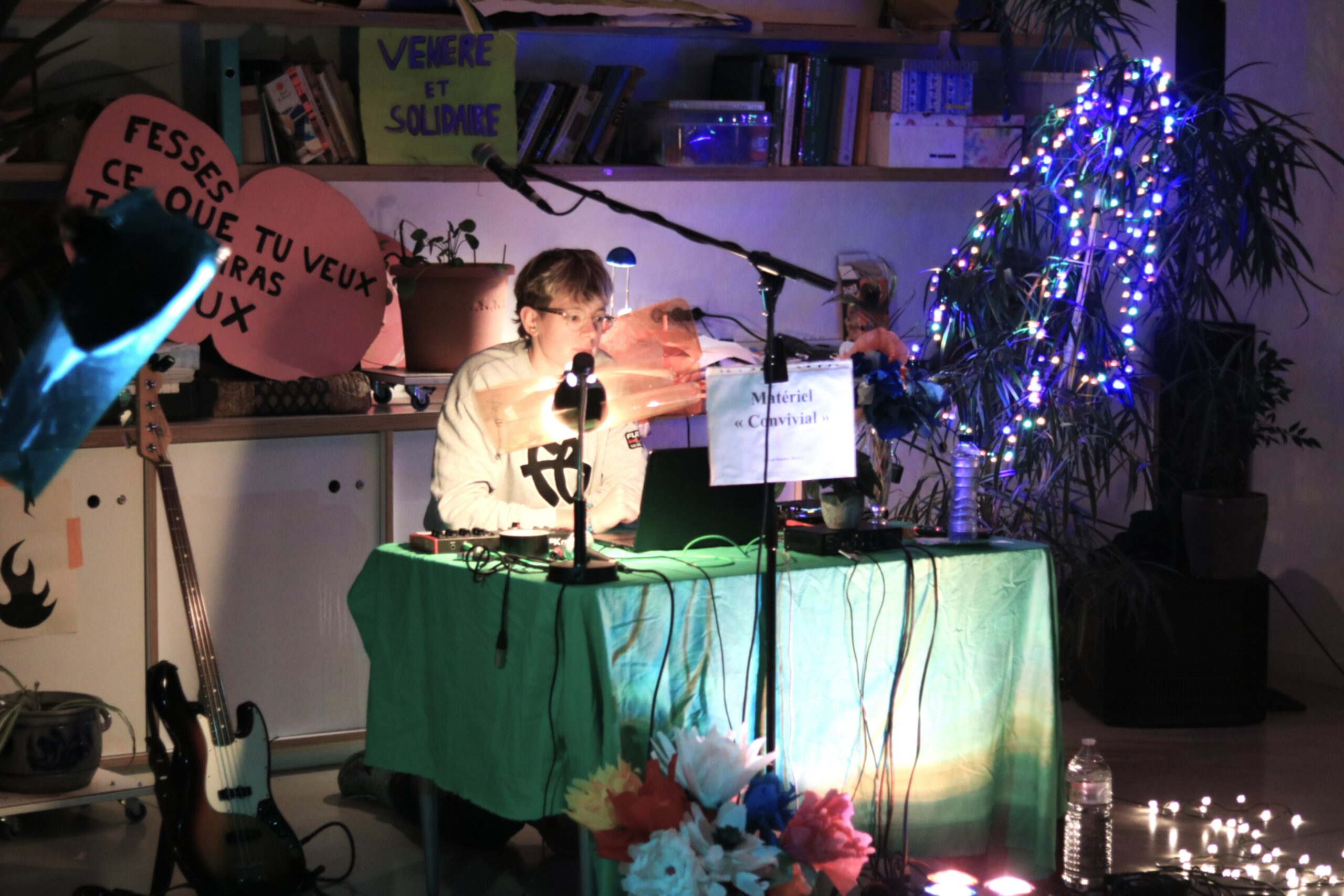 Dès la mise en place et le soundcheck, des jeunes du quartier, curieux, s’attroupent aux abords de la salle, qui se trouve . Ils accrochent au son, particulièrement celui de Jeune Meda, et s’intéressent au contexte : “ Des détenus vont venir voir le concert ? Y’aura la police alors ?” Une première occasion d’échanger sur le sujet de la prison, sur le fonctionnement de la Maison de Détention, d’informer sur les enjeux du monde carcéral.