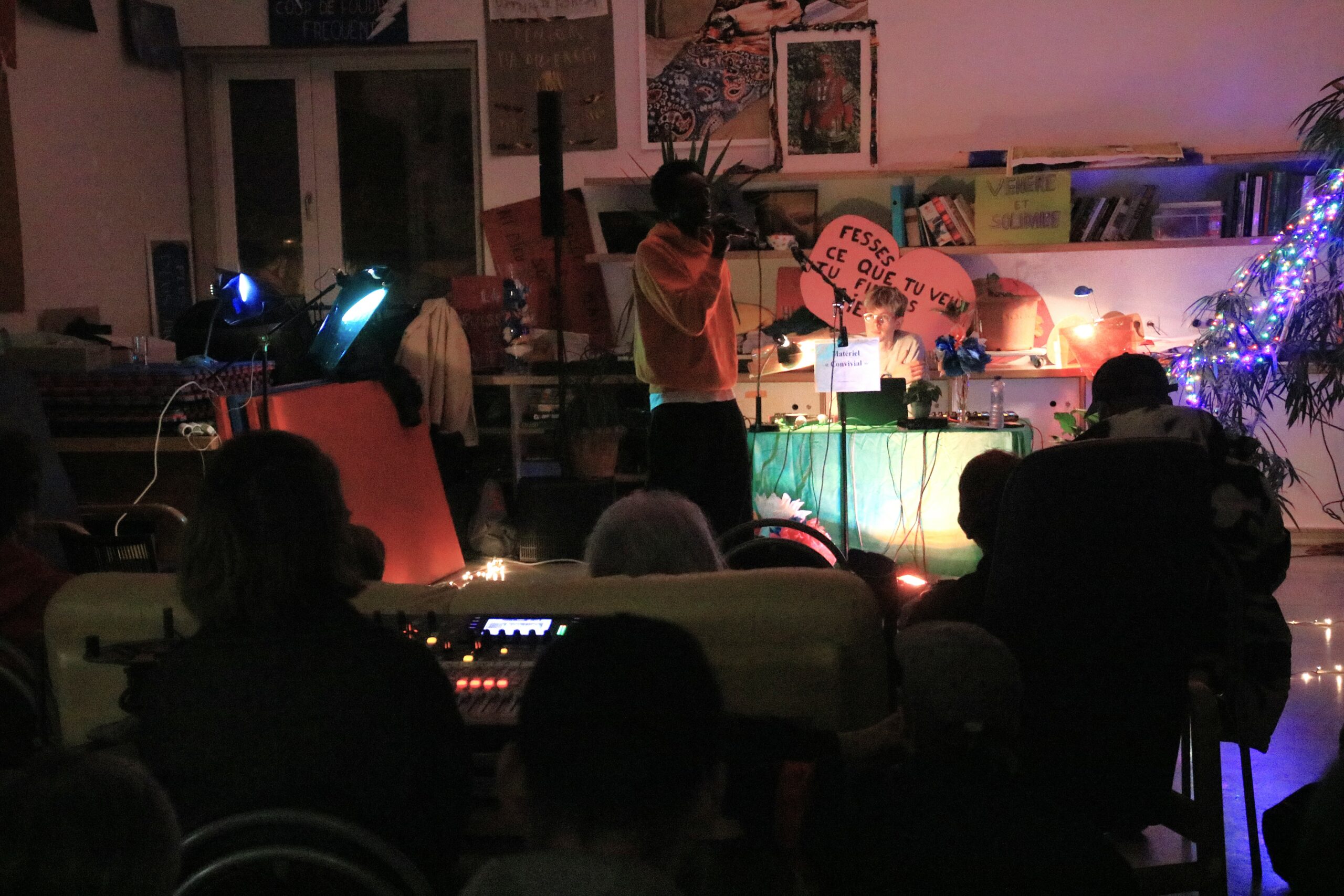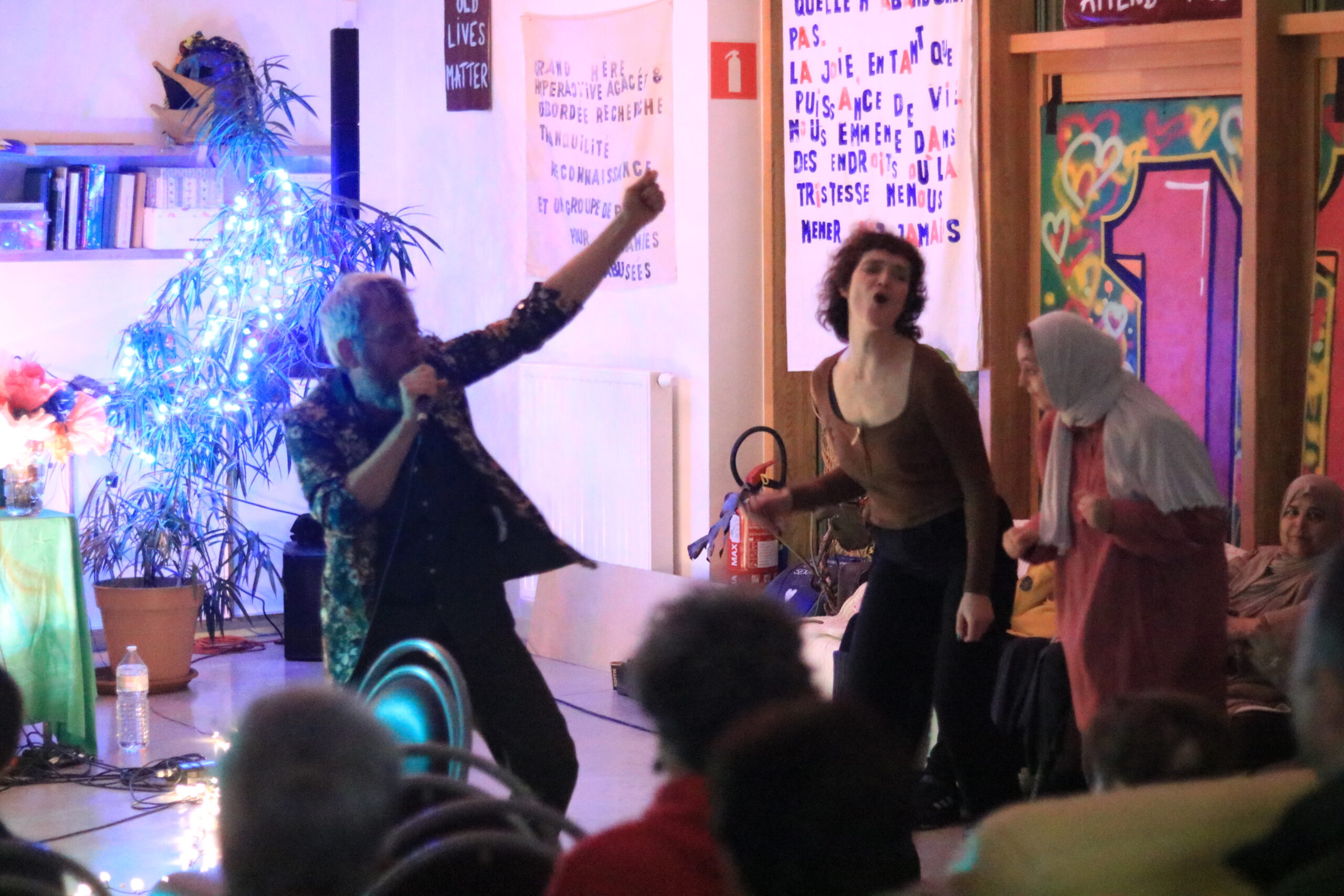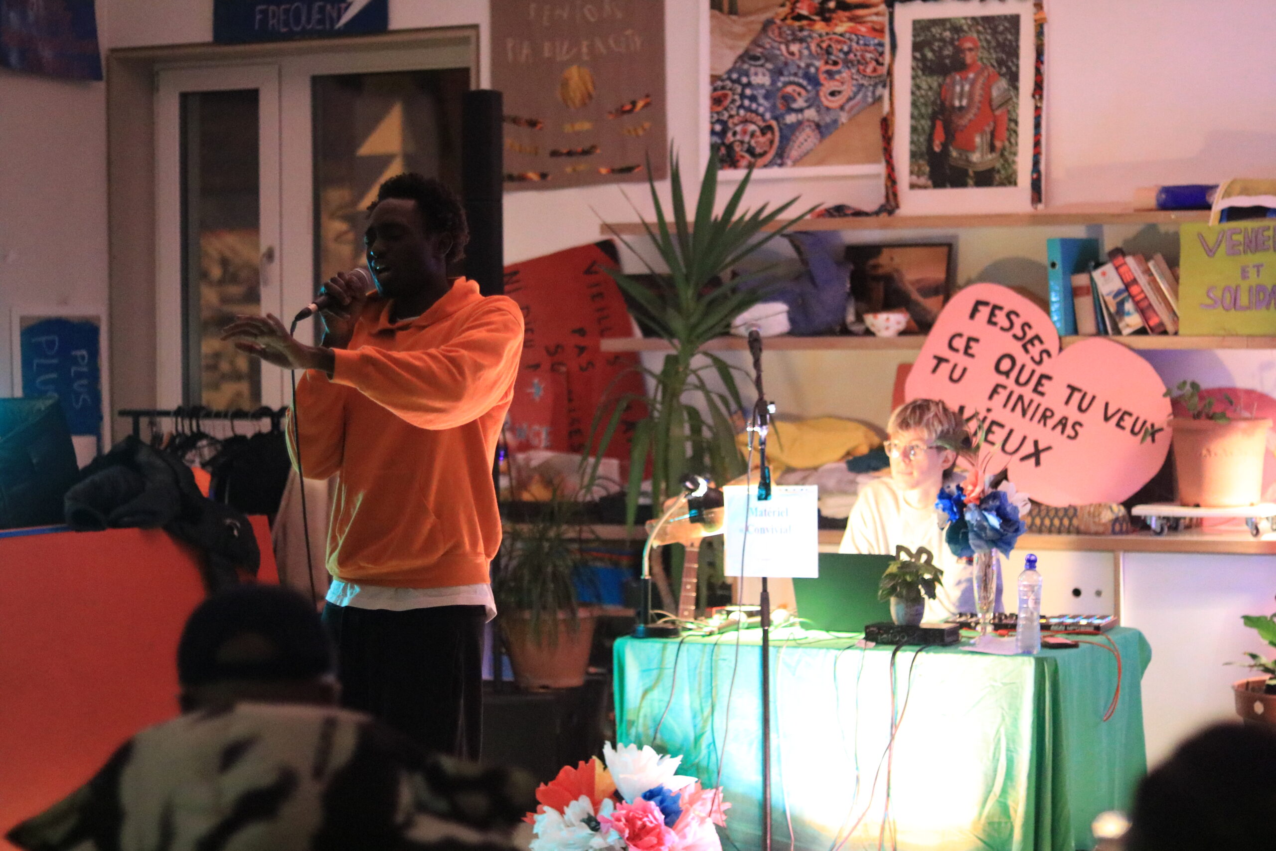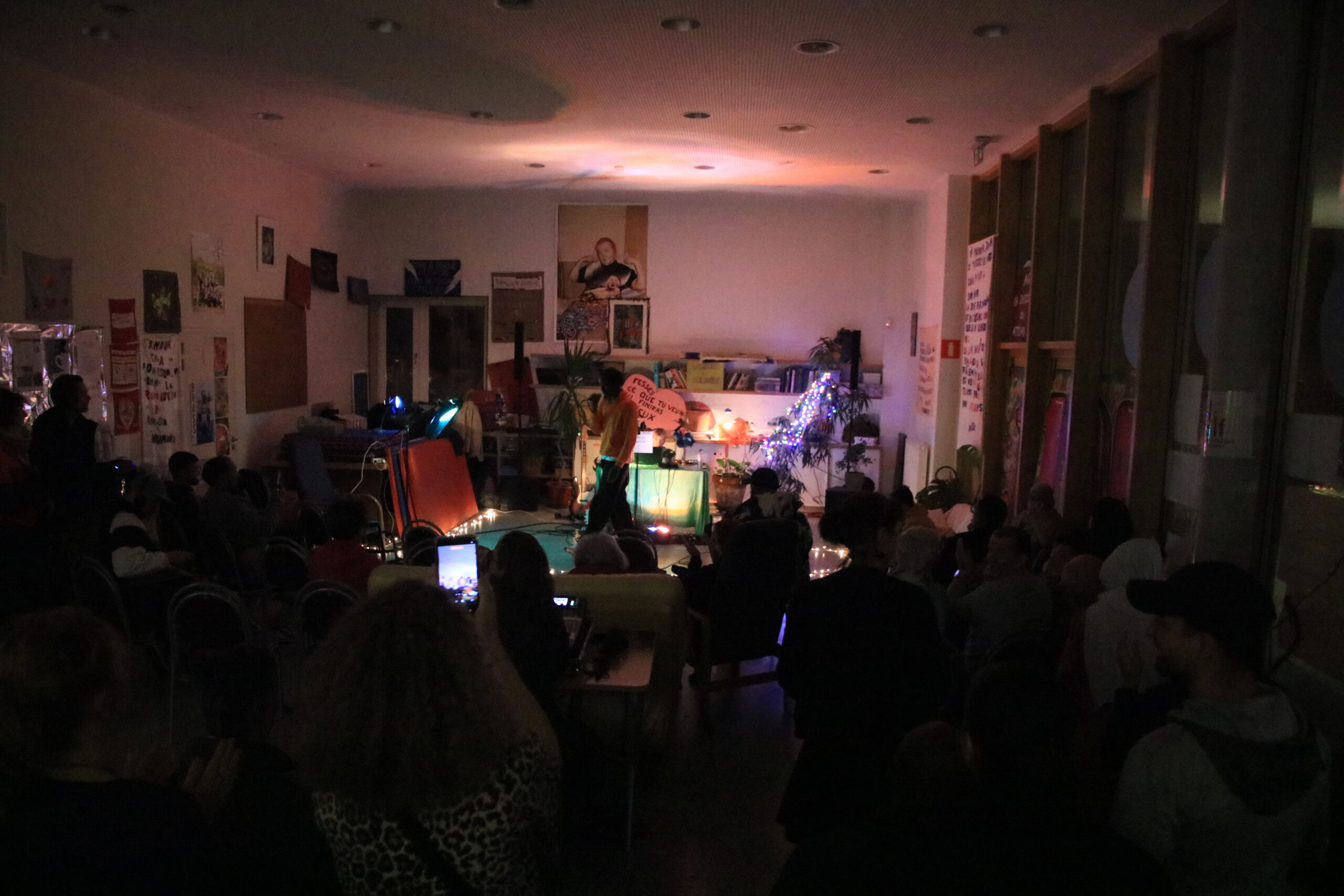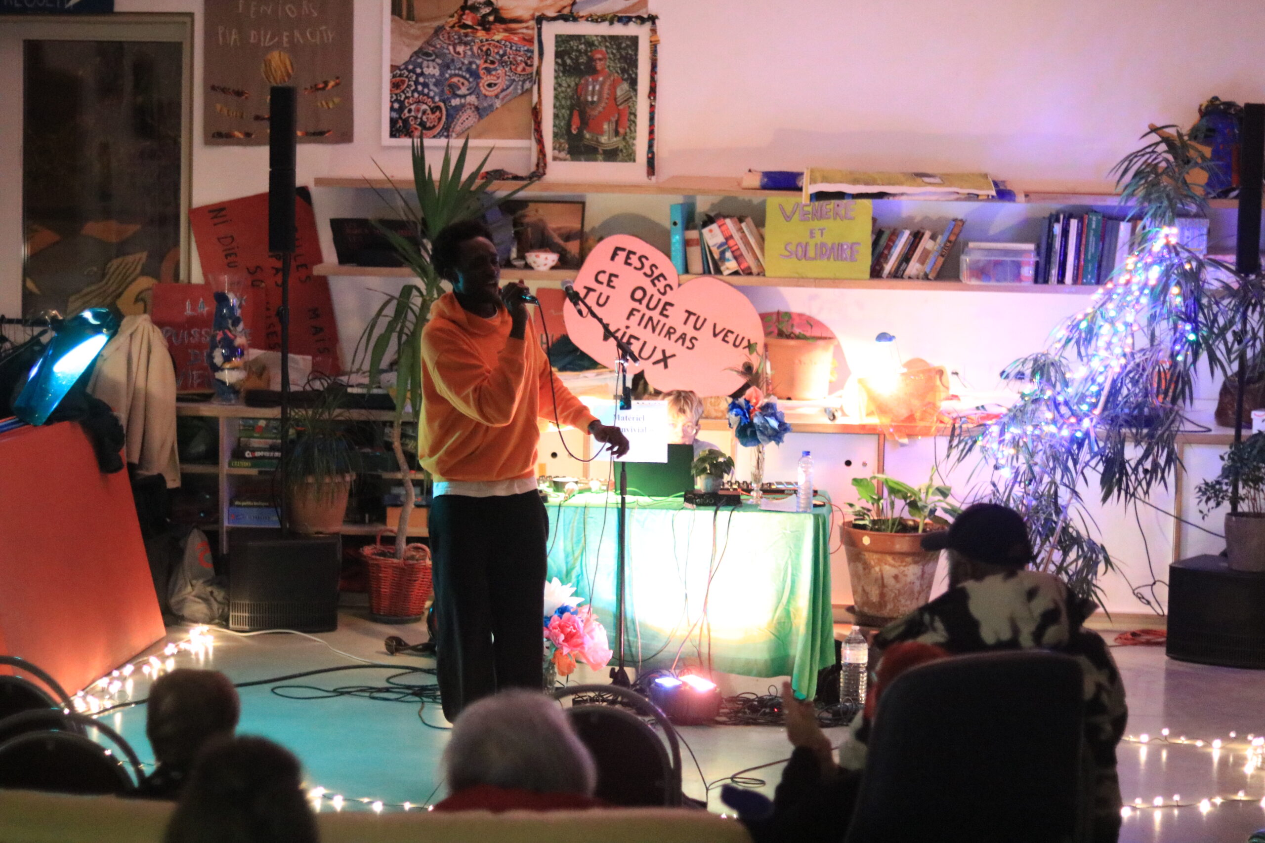 17h30 : les résidents arrivent, tout est en place, le public arrive au compte-gouttes : seniors, acteurs et actrices de l’associatif, artistes, curieux.curieuses et évidemment les jeunes du quartier, revenus en force !