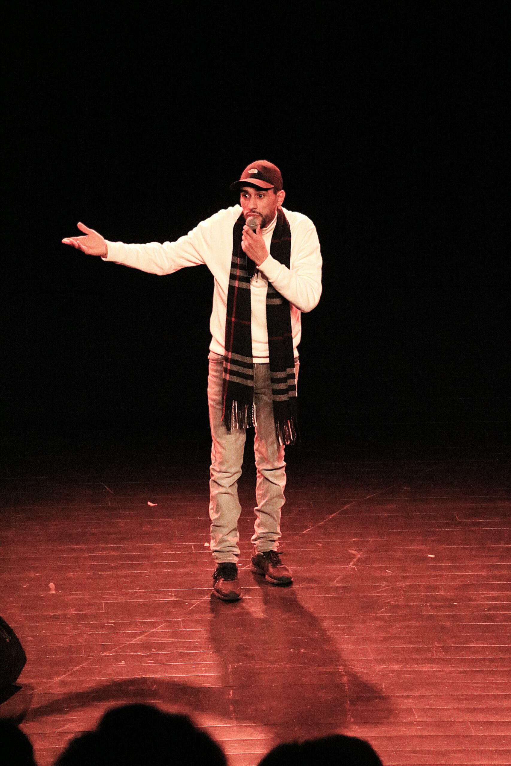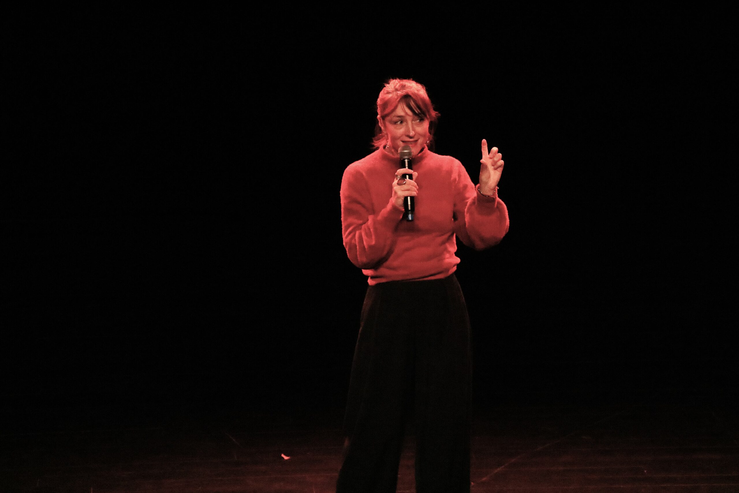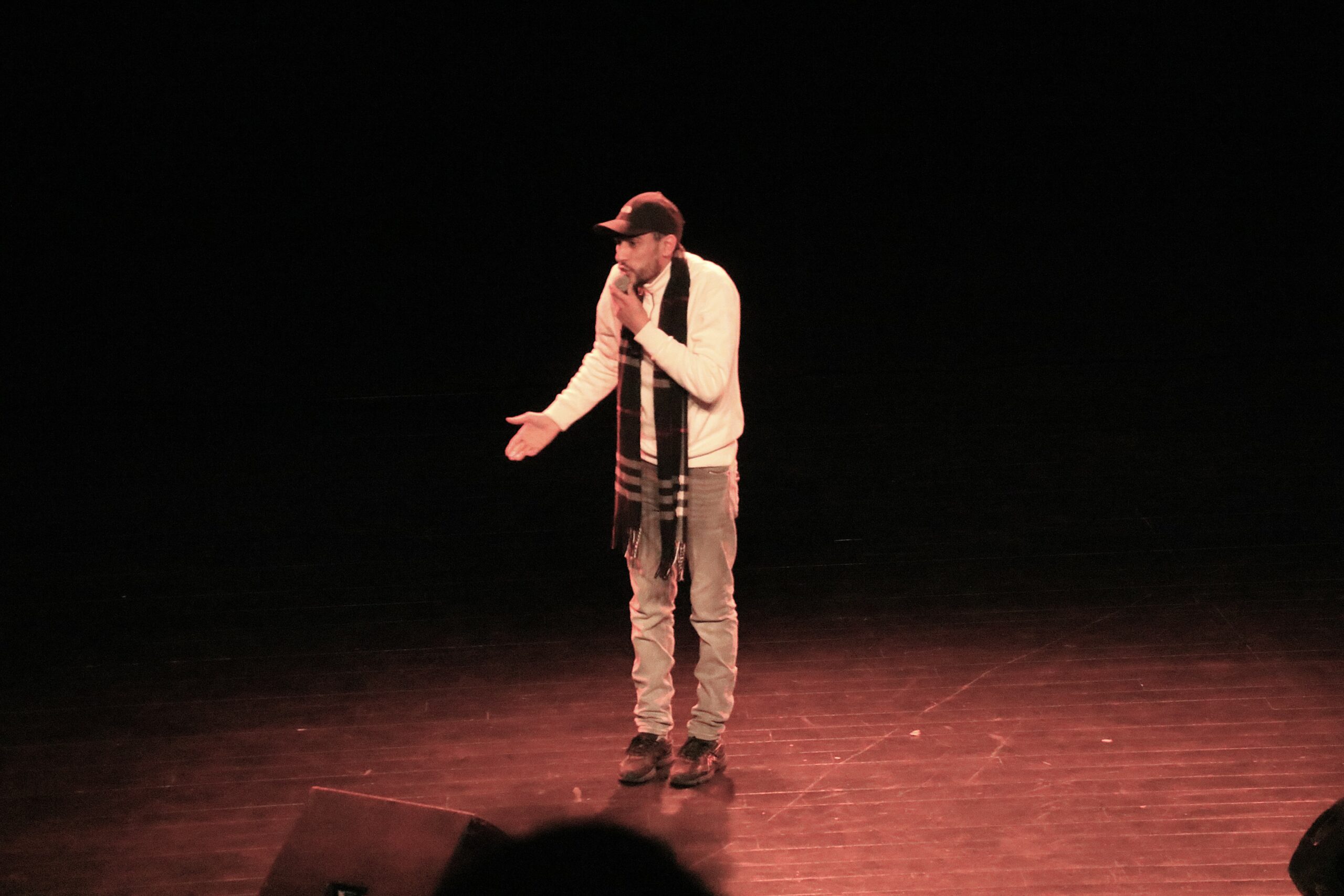 Au gré des interventions des stand-upeureuses, un fil rouge se dessine : les préjugés et stéréotypes toujours à l’œuvre dans notre société et qui touchent notamment les femmes, les personnes racisées, les précaires, les personnes détenues. Avec un humour caustique et grinçant, chaque artiste s’exprime et parvient à nous faire rire de ces biais, notamment Bilal, qui évoque son parcours et décrypte le langage propre à la détention avec beaucoup d’auto-dérision. Pour une première expérience sur scène, dans la grande salle du Centre Culturel Jacques Franck devant un public de plus de 100 personnes, Bilal assure au milieu d’un line-up de stand-upeureuses confirmés et pros. Une expérience qu’il n’oubliera pas de sitôt, et qui lui donne l’envie de poursuivre sur cette voie d’expression, en dehors des murs car il a été libéré entre-temps.
