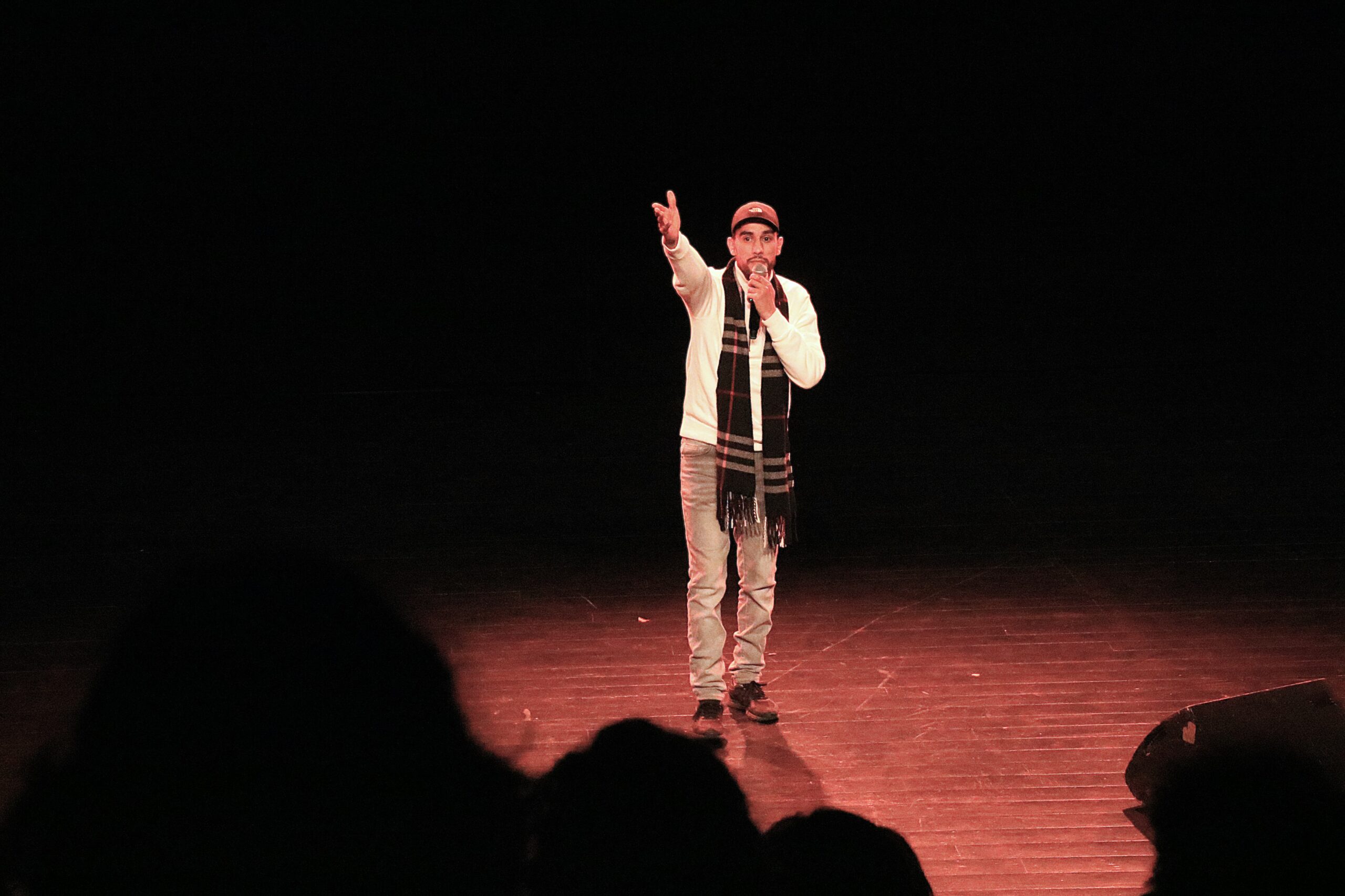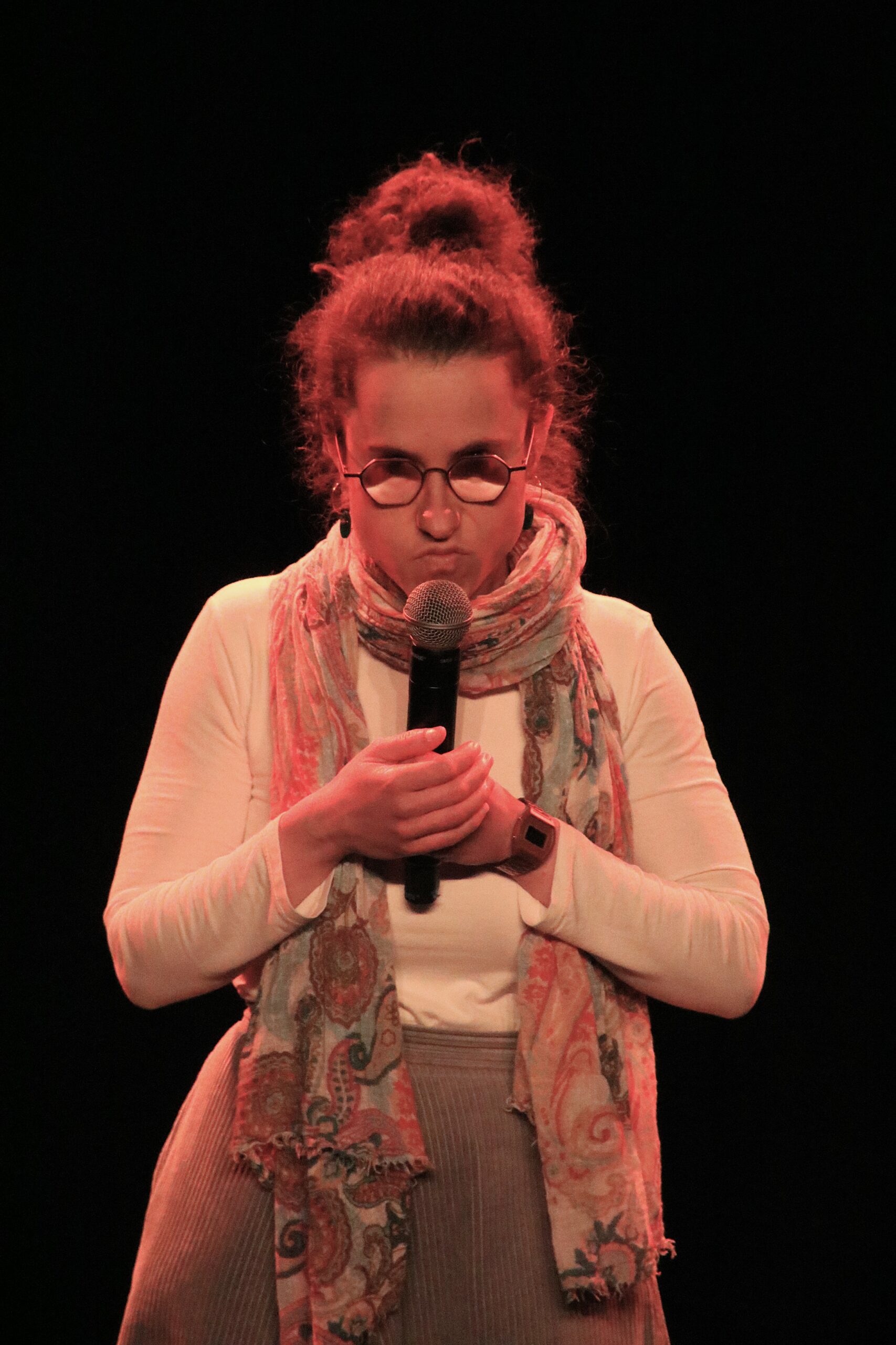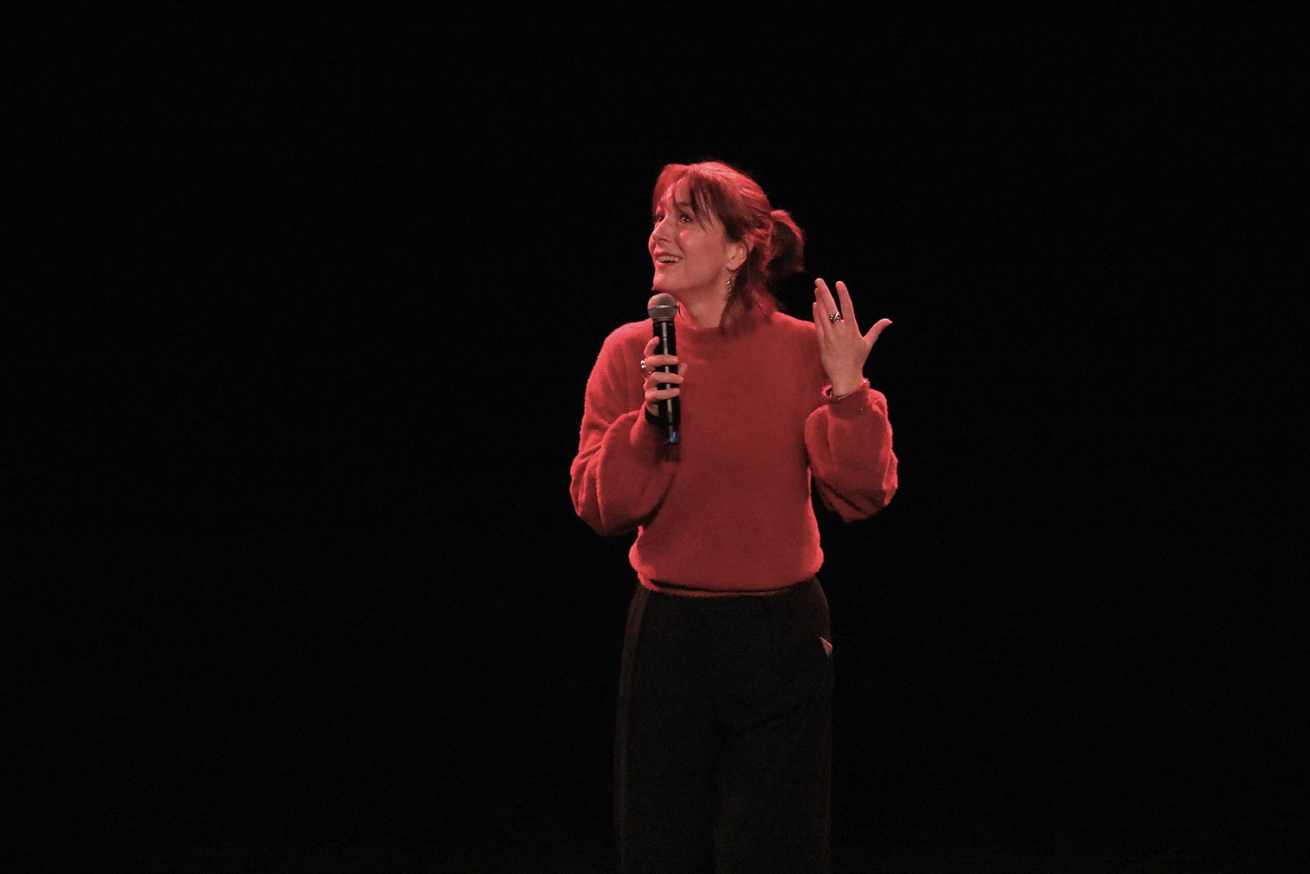 Au gré des interventions des stand-upeureuses, un fil rouge se dessine : les préjugés et stéréotypes toujours à l’œuvre dans notre société et qui touchent notamment les femmes, les personnes racisées, les précaires, les personnes détenues. Avec un humour caustique et grinçant, chaque artiste s’exprime et parvient à nous faire rire de ces biais, notamment Bilal, qui évoque son parcours et décrypte le langage propre à la détention avec beaucoup d’auto-dérision. Pour une première expérience sur scène, dans la grande salle du Centre Culturel Jacques Franck devant un public de plus de 100 personnes, Bilal assure au milieu d’un line-up de stand-upeureuses confirmés et pros. Une expérience qu’il n’oubliera pas de sitôt, et qui lui donne l’envie de poursuivre sur cette voie d’expression, en dehors des murs car il a été libéré entre-temps.